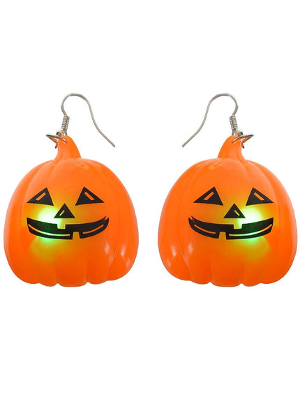 Light Up Orange Pumpkin Halloween Costume Earrings