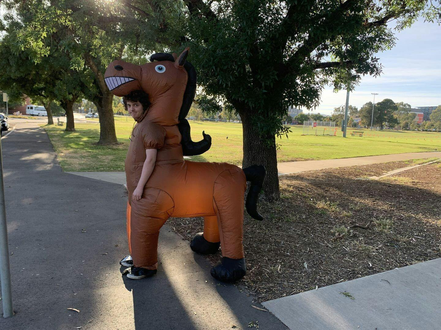 Are you looking for a costume that will make everyone crack up with laughter at Melbourne Cup? This giant horse costume is pretty perfect for just that! This inflatable costume will have you wanting to take part in the race that stops the nation as soon as you put it on. Complete with four inflated legs and a giant cheesy grin, this animal costume is sure to be a hit on race day!