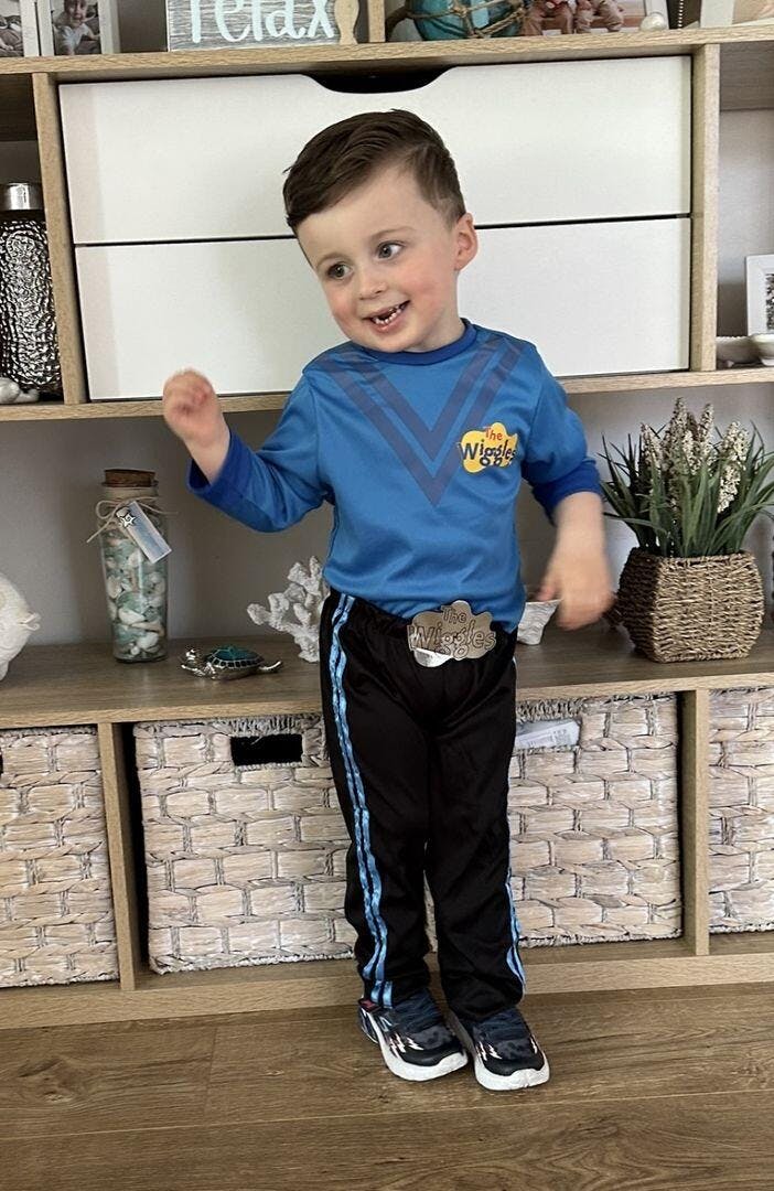 • Boys blue long sleeve Anthony Wiggle costume shirt is 100% stretch polyester fabric.