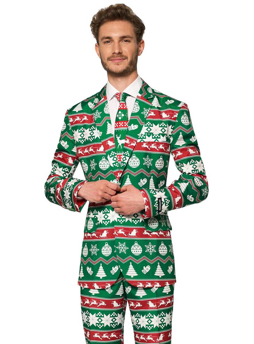 Nordic Green Christmas Print Mens Suitmeister Costume Suit