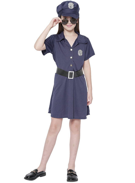 Girl's Dark Navy Blue Police Officer Costume Dress