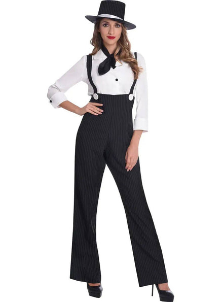 Are you looking for a unique and stylish plus size Womens costume? Look no further than our classic plus size 1920s gangster costume. This costume is perfect for ladies who want to show their sass and style. The white shirt is flattering and stylish, while the black pants with white pinstripes add a touch of retro glamour. And don't forget the attached suspenders - they're essential for any 1920s outfit!